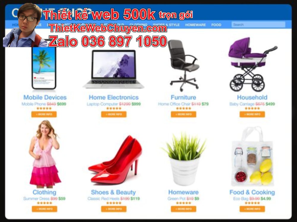Thiết kế web 500k giá rẻ trọn gói bán phụ kiện