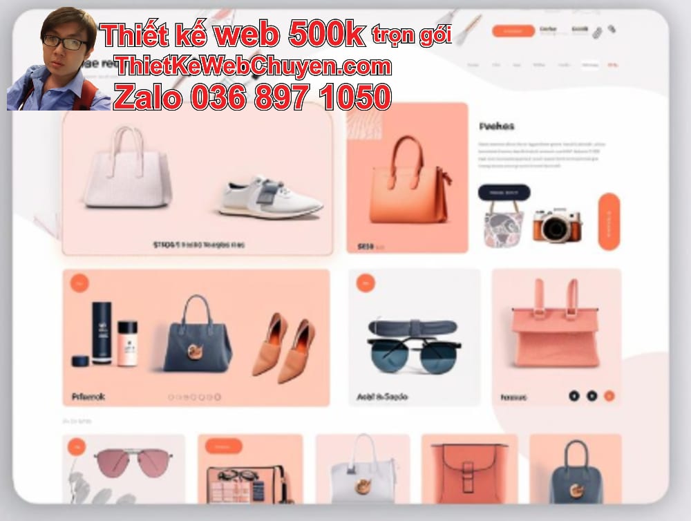 Thiết kế web 500k giá rẻ trọn gói bán phụ kiện được xây dựng đồng bộ với logo và màu sắc thương hiệu, giúp tăng độ tin cậy và thu hút khách hàng.