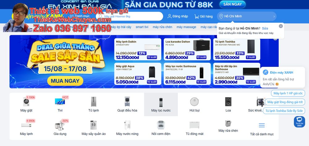 Trong thời đại thương mại điện tử bùng nổ, việc sở hữu một website bán hàng chuyên nghiệp là yếu tố bắt buộc để cạnh tranh. Với các doanh nghiệp điện máy, mô hình website của Điện Máy Xanh (DMX) đã chứng minh hiệu quả vượt trội trong việc thu hút khách hàng và tối ưu trải nghiệm mua sắm. Thiết kế web 500k giá rẻ trọn gói giống điện máy xanh (DMX) mang đến cơ hội cho các cửa hàng, doanh nghiệp vừa và nhỏ sở hữu một nền tảng trực tuyến chuyên nghiệp, hiện đại và chuẩn thương hiệu nhưng với chi phí vô cùng hợp lý. Khi kết hợp cùng thiết kế logo thương hiệu, website không chỉ đẹp mắt mà còn tăng cường độ nhận diện và uy tín.