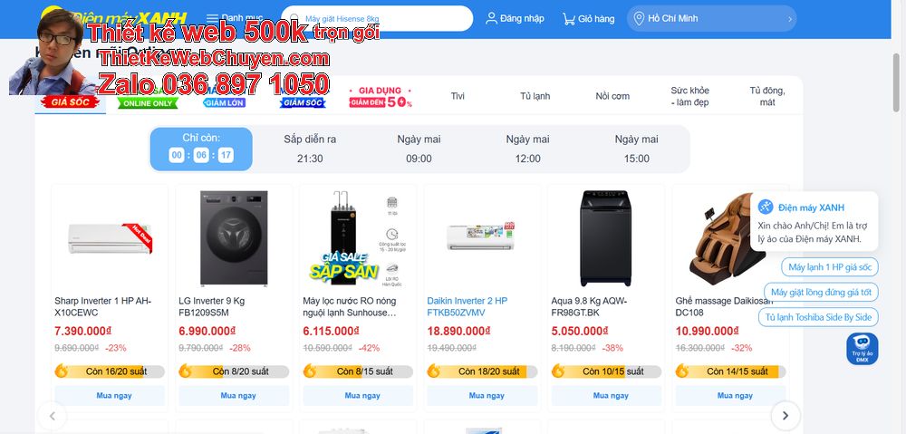 Thiết kế web 500k giá rẻ trọn gói giống điện máy xanh (DMX) là giải pháp hoàn hảo cho các doanh nghiệp muốn sở hữu một website chuyên nghiệp, chuẩn SEO, giao diện hiện đại với chi phí hợp lý. Website không chỉ giúp quảng bá sản phẩm mà còn nâng cao hình ảnh thương hiệu, tăng tỉ lệ chốt đơn và giữ chân khách hàng lâu dài.