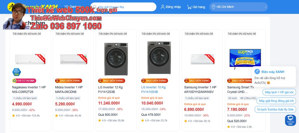 Một web 500k giống điện máy xanh vẫn hoàn toàn có thể đạt được tiêu chuẩn thẩm mỹ và hiệu quả nếu được thiết kế chuẩn ngay từ đầu.