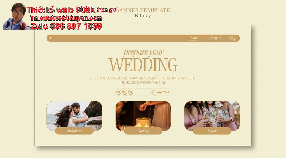Giao diện tinh tế, phù hợp với ngành tiệc cưới trong thiết kế web 500k giá rẻ trọn gói nhà hàng tiệc cưới